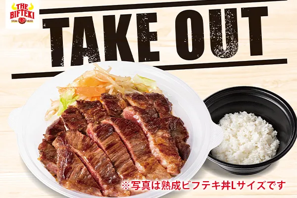 熟成ビフテキ丼 M(約180g) 1,340円(税込1,447円) 熟成ビフテキ丼 L(約240g) 1,590円(税込1,717円) 熟成ビフテキ丼 LL(約300g) 1,840円(税込1,987円)